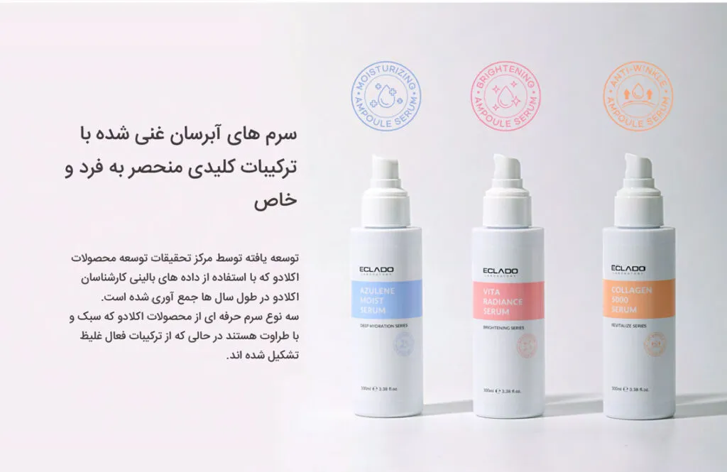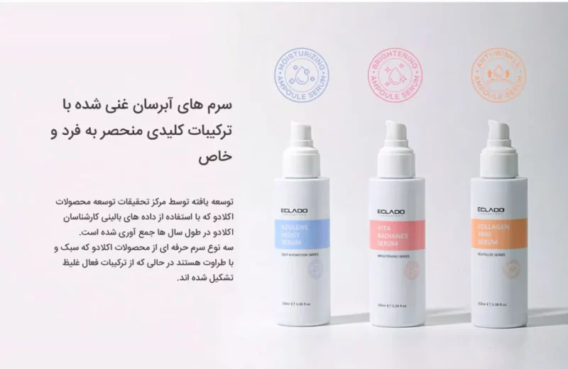 این سرم قدرت زیادی در جوانسازی و سالم نگهداشتن پوست دارد. قرار نیست صورت شما پر از چین و چروک باشد تا به سراغ این سرم بروید. می توانید برای جلوگیری از این اتفاق هم از آن استفاده کنید. برند اکلادو از مواد اولیه ایده آل و موثر برای ساخت این سرم استفاده کرده که باعث شده اثر بخشی آن چندین برابر دیگر سرم های کلاژن ساز شود. از سری ترکیبات این محصول محبوب و پر طرفدار می توان به موارد زیر اشاره کرد: